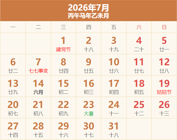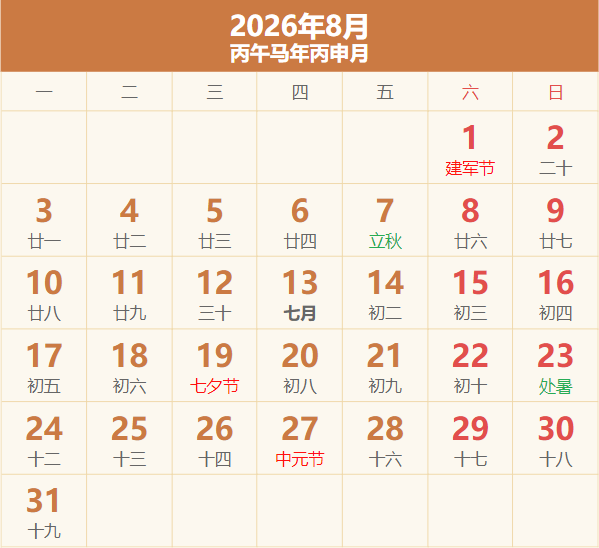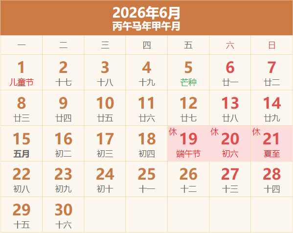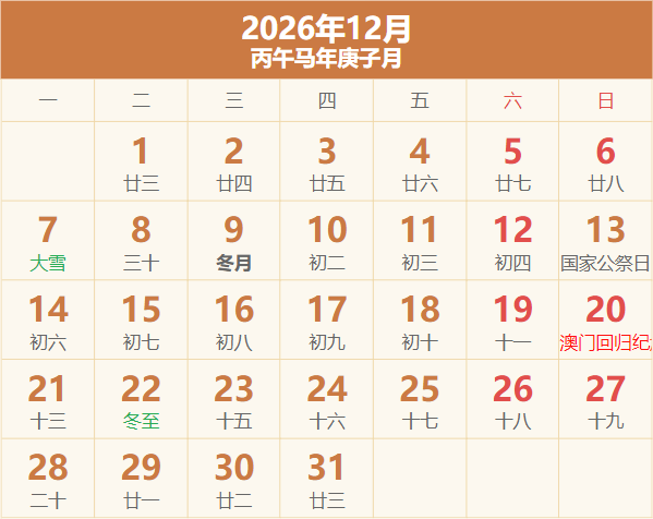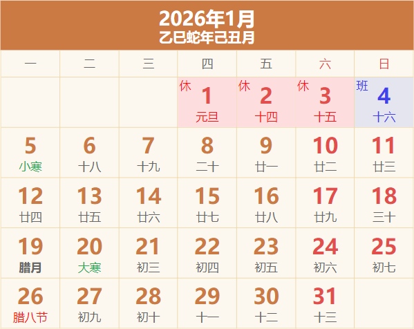 2026年放假日历表